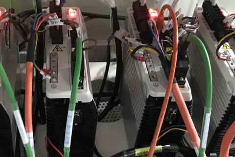 歐姆龍PLC,EtherCAT實時工業(yè)以太網(wǎng)總線控制 – 核心控制使用4套ABB伺服控制系統(tǒng),跟隨主軸(虛軸)實現(xiàn)1軸位置同步,3軸電子凸輪運行