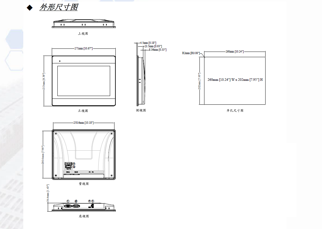 10.1' 1024 x 600 TFT LCD, LED 背光